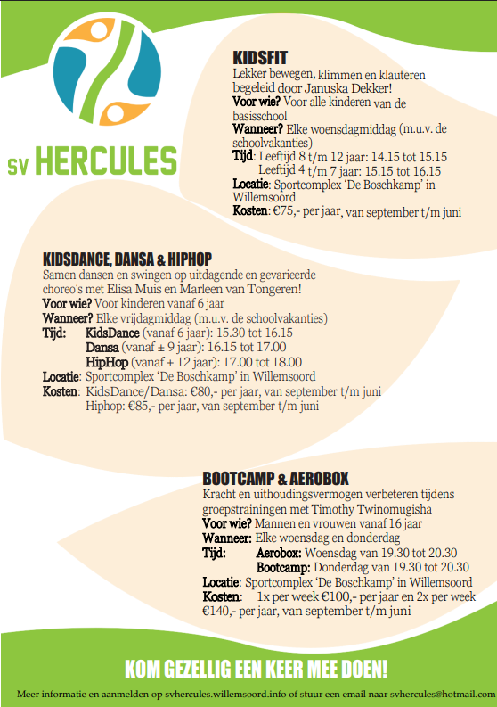 In de maanden juli en augustus wordt er bij SV Hercules niet gesport. Bij de Bootcamp geldt een winterstop in de maand december. Tijdens de schoolvakanties gaan deze lessen wel door.